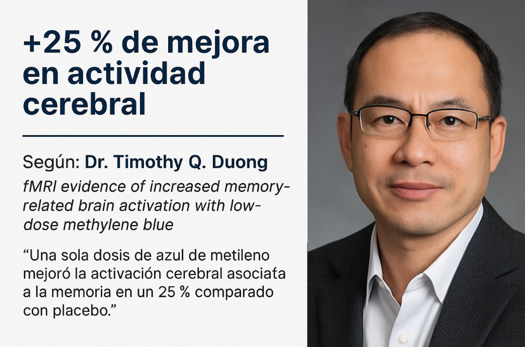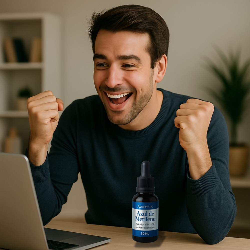 Totalmente. A diferencia de cafeína o nootrópicos comerciales, el Azul de Metileno trabaja directamente sobre las mitocondrias. No estimula artificialmente, sino que optimiza lo que ya tienes. Pocas cosas en el mundo hacen esto a nivel celular.