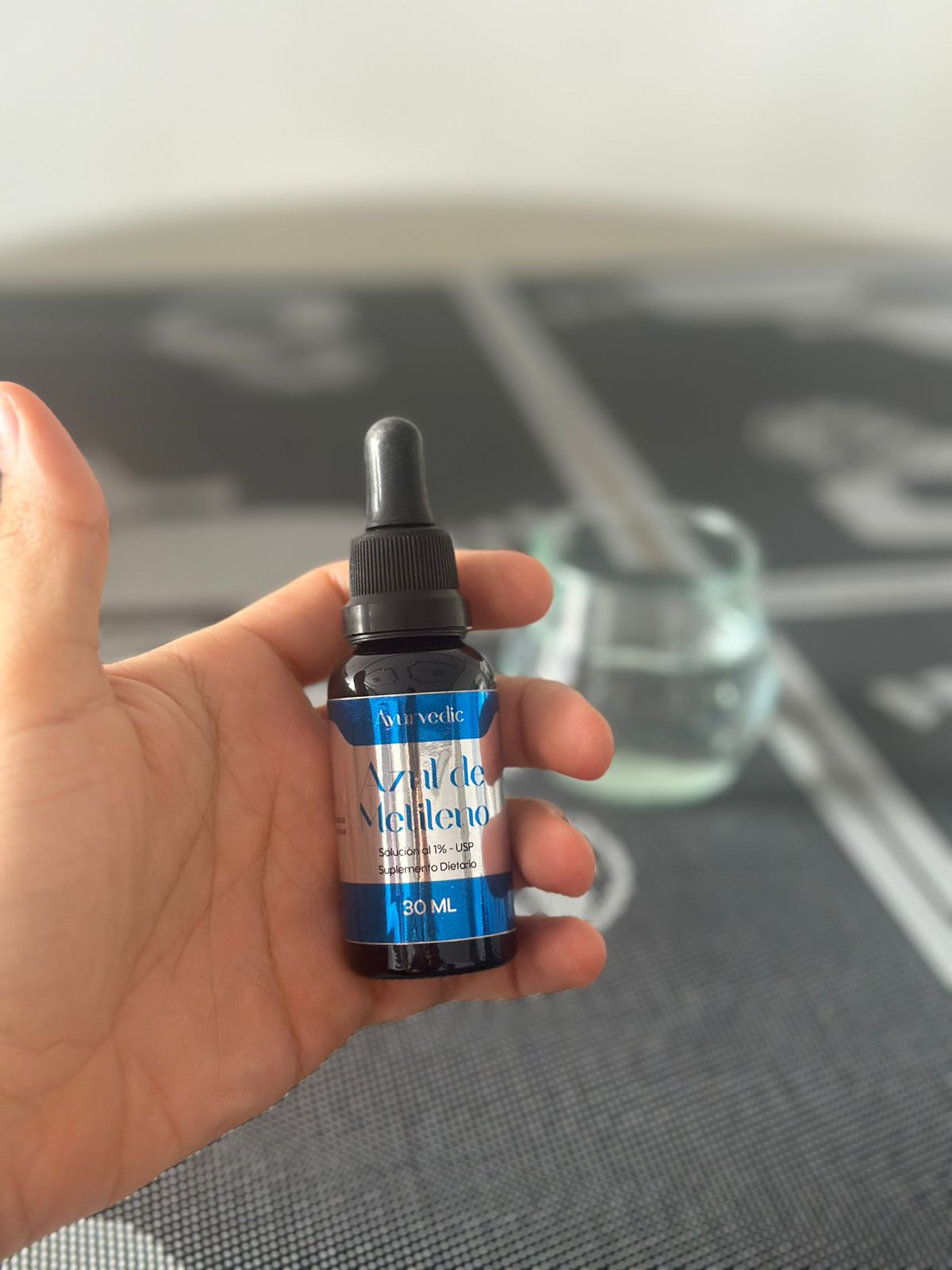 AZUL DE METILENO AYURVEDIC 1% es la llave que enciende tu energía celular, agudiza tu mente y protege cada célula contra el paso del tiempo. Descubre el poder científico-milenario detrás de este elixir azul y revoluciona tu bienestar.
