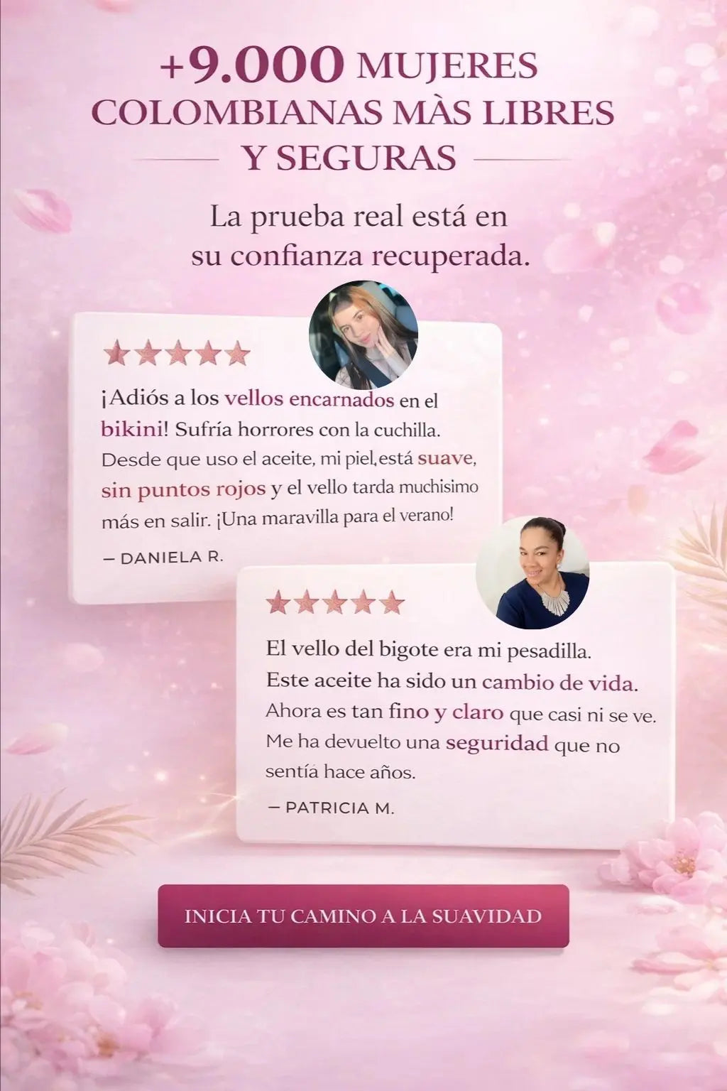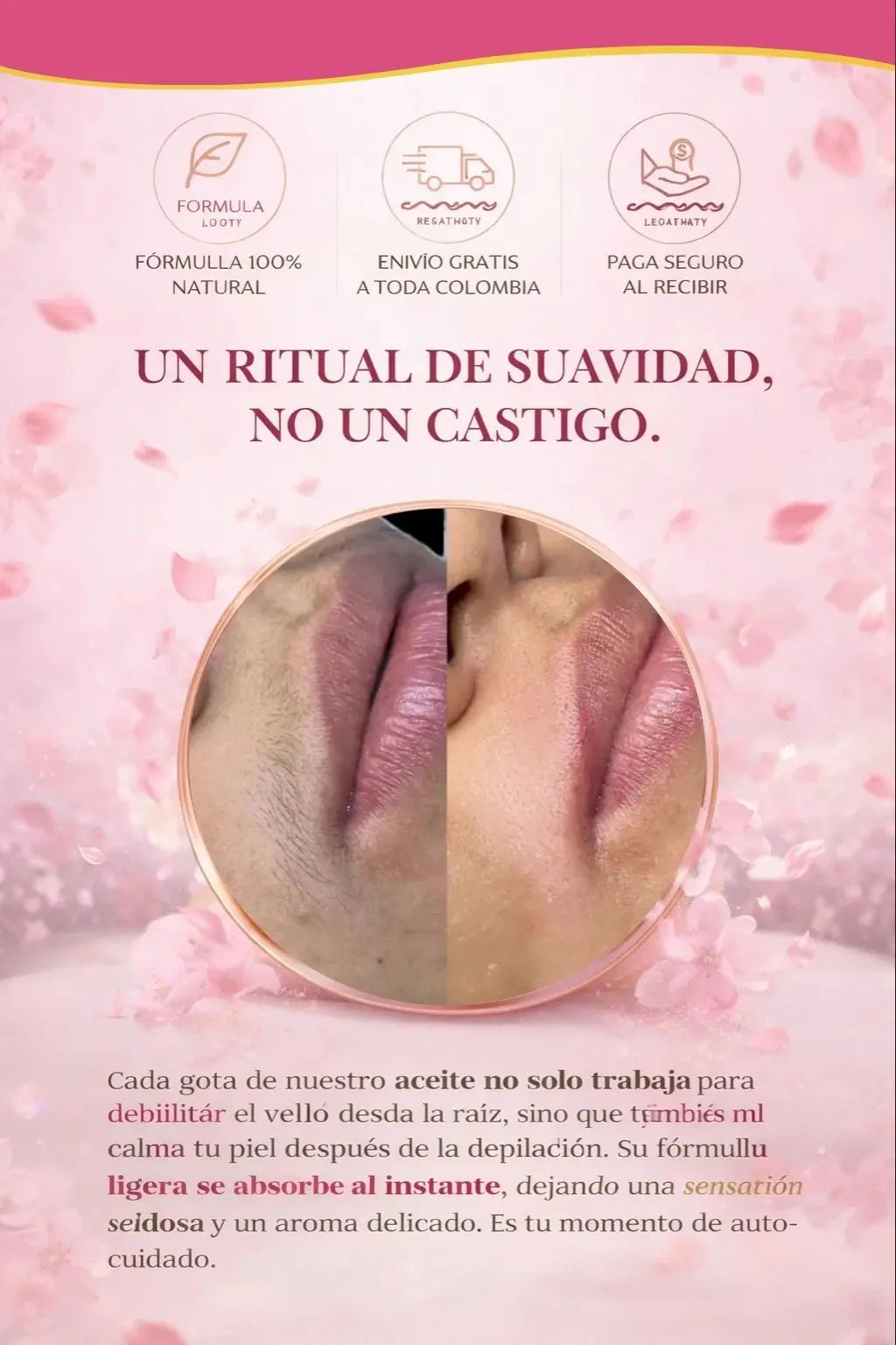 Aplica el aceite dos veces al día (mañana y noche) sobre la zona con vello no deseado, preferiblemente después de depilar o rasurar.